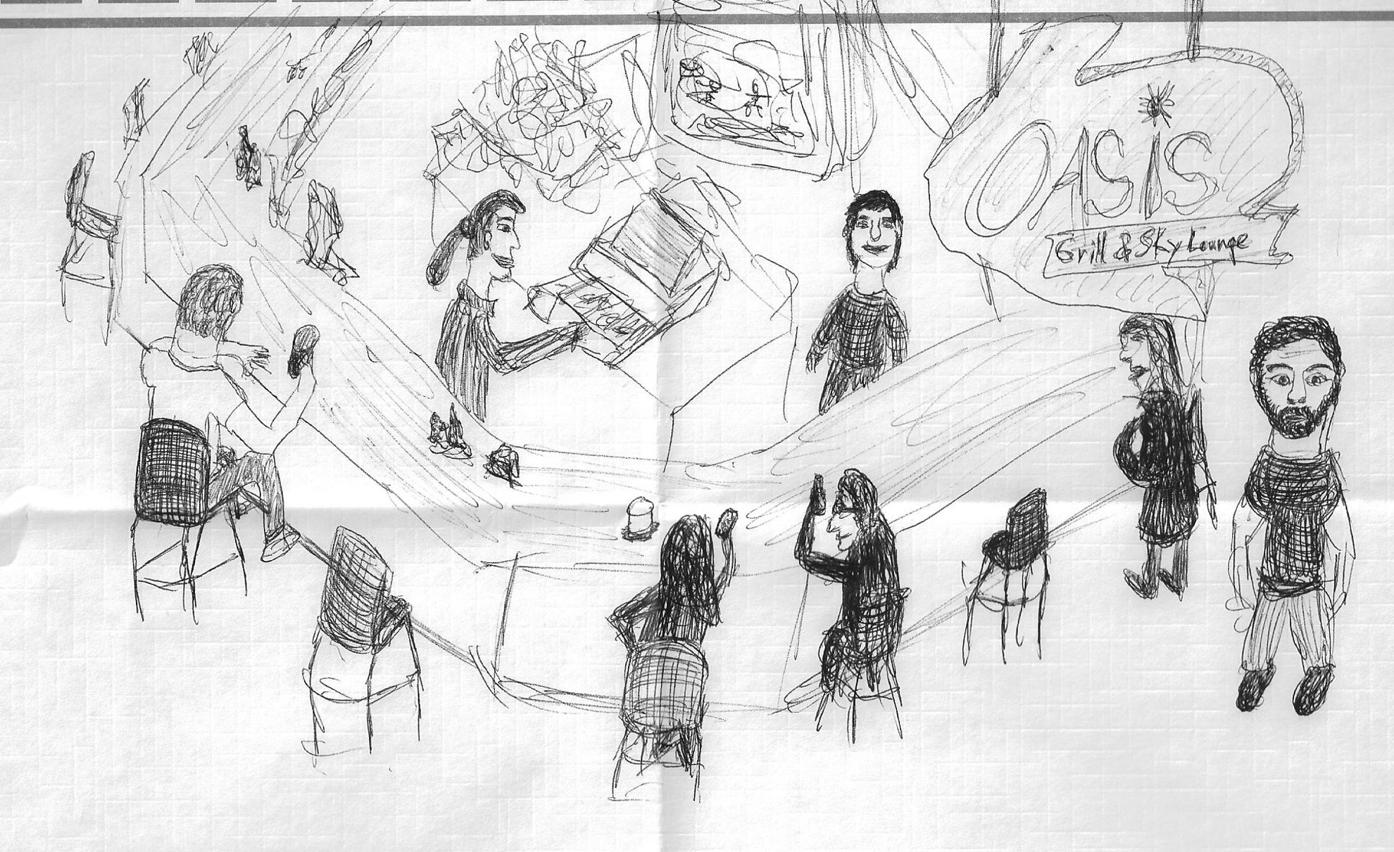 At the John Wayne airport in Orange County, I spent a few moments drawing at the Oasis before my flight home.