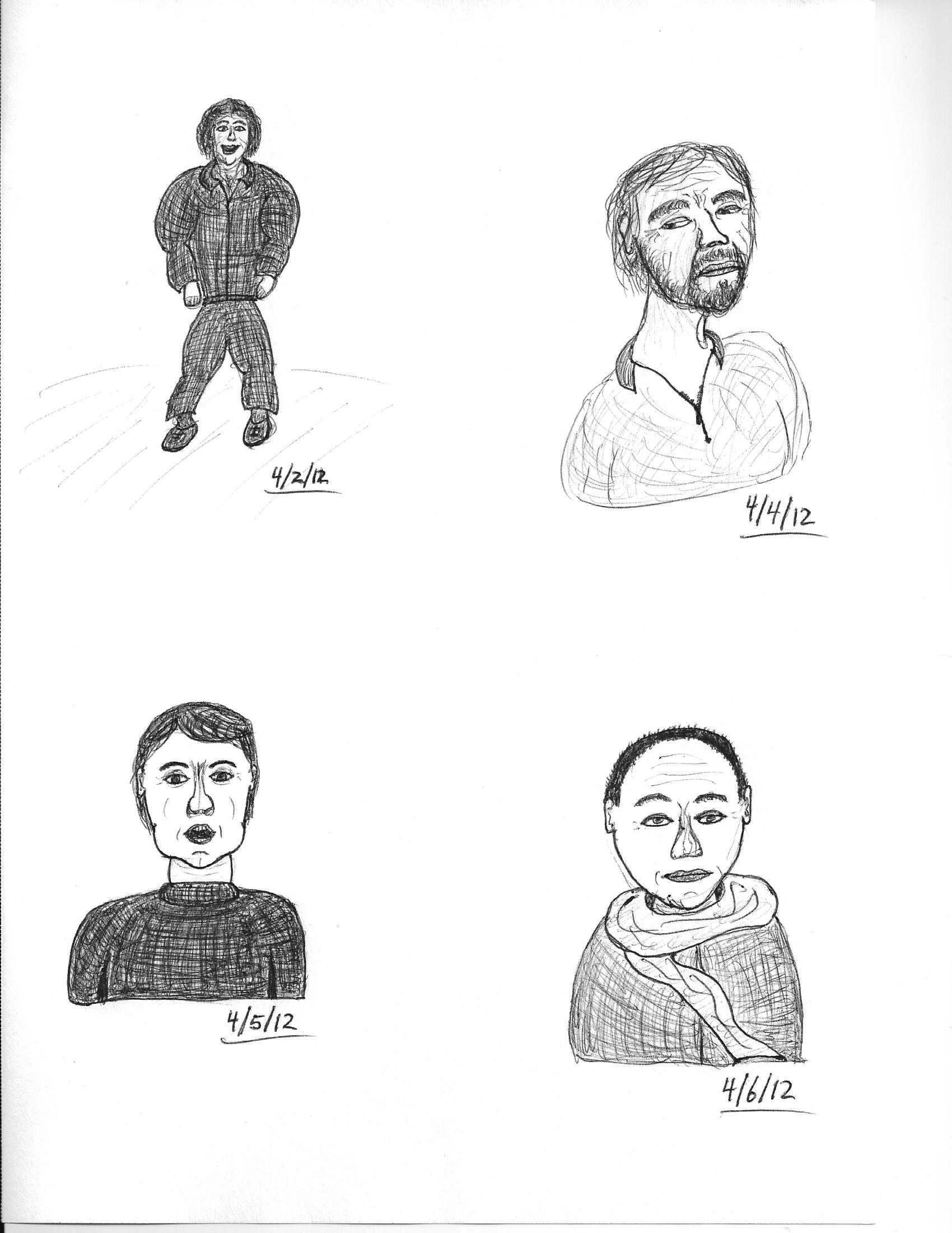 Here are a few characters sleeping. I may want to come back to this theme, as I can imagine other possibilities. {No reference material}
